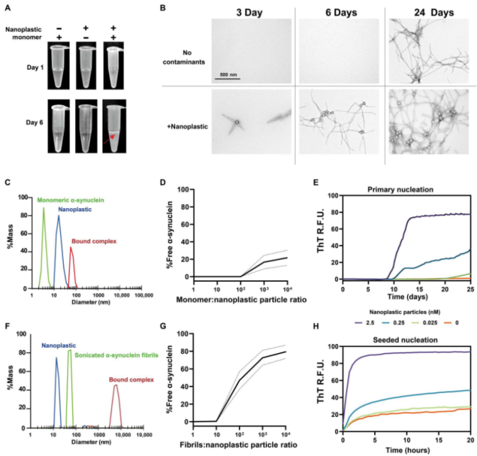 2023年11月17日,国际知名期刊Science Adances在线发表了一篇题为Anionic nanoplastic contaminants promote Parkinson’s disease–associated α-synuclein aggregation的研究文章,作者在这项研究中指出阴离子型聚苯乙烯纳米塑料与人类α-突触核蛋白的高亲和力结合促进了α-突触核蛋白的聚集,并在小鼠模型中显示了潜在的神经系统影响,提出了微塑料可能与帕金森病风险相关的新观点。
