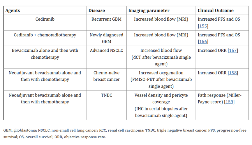 研究发现了VEGF抑制可增强化疗诱导的内皮细胞凋亡。VEGF/VEFR抑制剂与化疗的组合已经证明对多种实体瘤类型有明显的益处。此外,许多临床研究强调,接受单独抗VEGF/VEGFR治疗或与化疗联合治疗的患者,其肿瘤血液灌注或氧合增加,具有更好的临床结果。