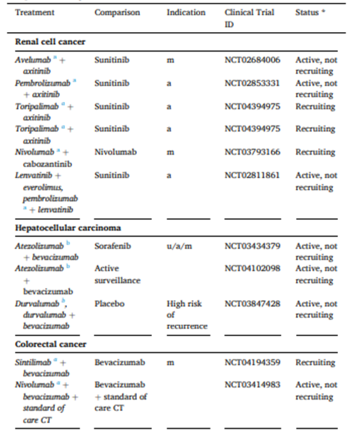 表4 一些与免疫检查点抑制剂联合治疗在实体瘤中的III期试验,doi:10.1016/j.ejphar.2023.175586.