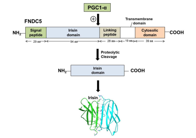 FNDC5结构和鸢尾素形成的示意图,doi: 10.3390/molecules27031118