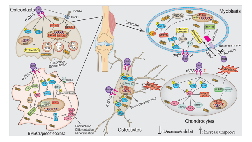 鸢尾素在肌肉骨骼中作用的潜在机制信号通路图,doi: 10.3389/fendo.2022.962968