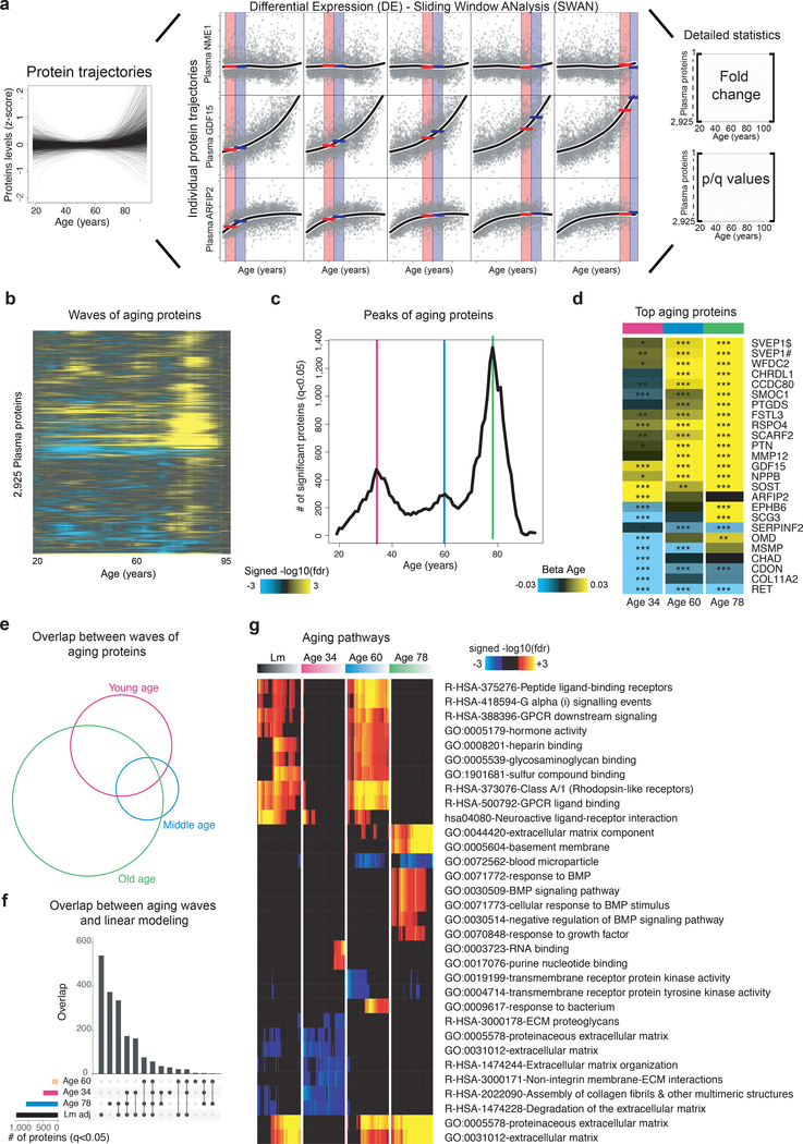 为了定量了解一生中发生的蛋白质组学变化,研究者开发了差异表达-滑动窗口分析软件工具(DE-SWAN),检测了特定生命阶段的变化,确定了衰老对血浆蛋白质组的顺序影响。