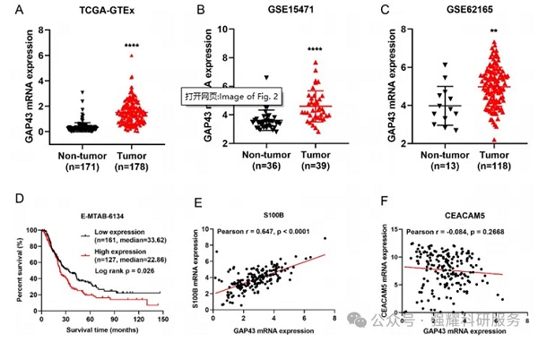 首先,研究人员通过分析TCGA和GEO数据库,发现GAP-43在胰腺癌组织中大量表达,尤其是在PNI组织中,并且其高表达与不良预后显著相关。然后通过分析胰腺癌的临床样本进一步证实了这一结果。这一发现与几项研究一致,表明GAP-43是一个理想的PNI标记,因此是构建PNI探针的理想候选者。