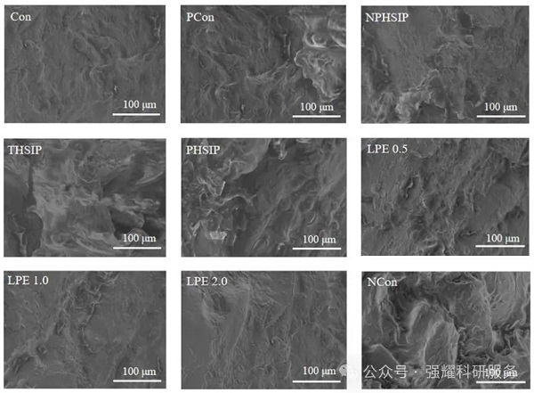 不同浸泡液影响肌原纤维蛋白在冻融循环期间构象的扫描电子显微图