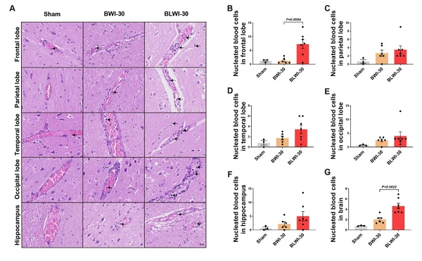 与BWI-30组相比,BLWI-30组在体内观察到更多的血管内CD45+细胞