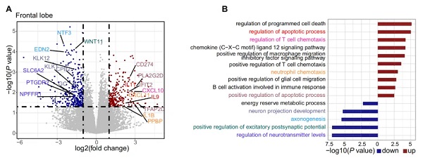 为了阐明肝脏对脑损伤保护作用的分子机制,研究团队采用转录组测序(RNA-seq)来分析大脑的额叶和颞叶等组织。结果显示,与BWI-30组相比,BLWI-30组的脑组织中的细胞死亡和免疫反应减少。代谢组分析显示,在离体大脑NMP期间,肝脏通过增加酮体的产生来增强能量代谢来支持大脑,BLWI-30组的亚油酸、花生四烯酸及其衍生物等代谢物减少,它们有助于神经保护并支持各种病理条件下的神经元存活,包括缺血性损伤。这些结果表明,肝缺血存在与否导致大脑的转录组和代谢组发生巨大变化。